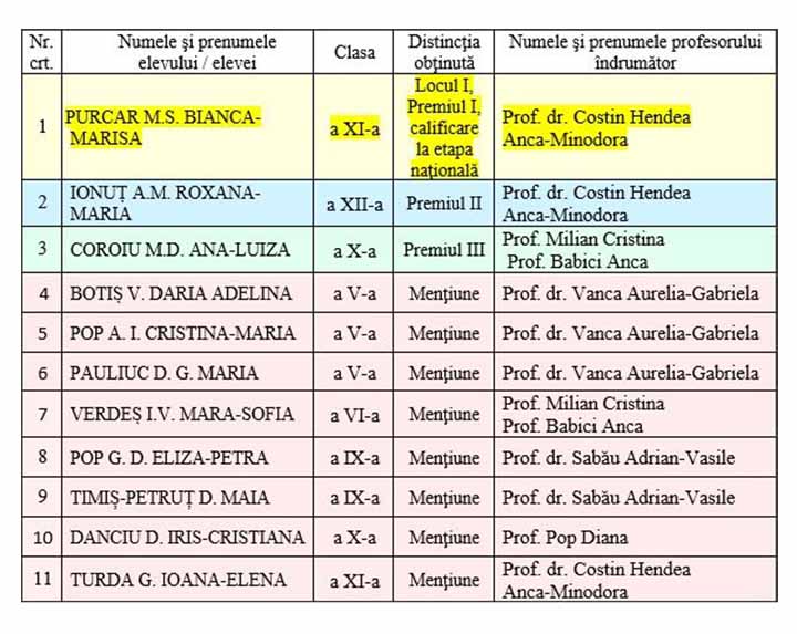 • Premiul I: Purcar M.S. Bianca-Marisa, clasa a XI-a – îndrumător: Prof. dr. Costin Hendea;